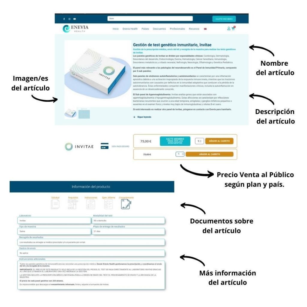 For the purposes of these Conditions, it is understood that the activity that ENEVIA HEALTH LLC develops through the website includes: Sale and distribution of laboratory tests.
